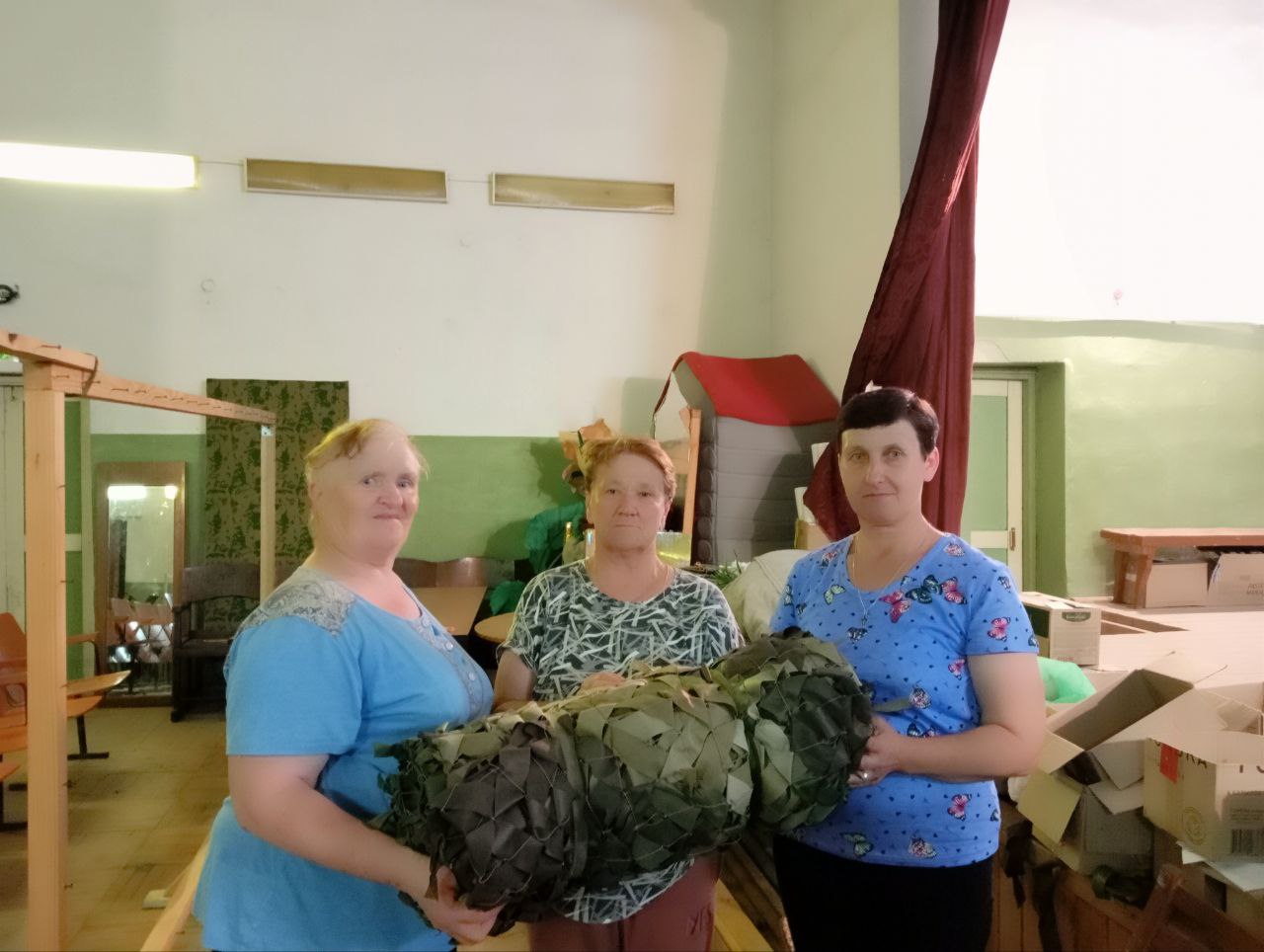 В с. Кириллово социальные работники ГБУ "КЦСОН Краснобаковского муниципального округа" сплели еще одну маскировочную сеть для отправки в зону действия СВО