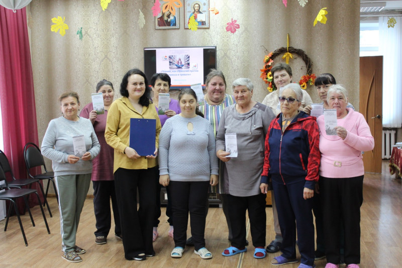 В отделении дневного пребывания отдыхающие своими руками сделали салфетницу из джута.